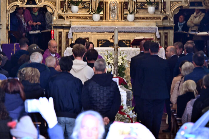 Le esequie sono celebrate dal parroco di Strozza, don Luigi Carminati, insieme a diversi sacerdoti provenienti da tutta la valle Imagna. In prima fila anche i sindaci dei Comuni vicini, con la fascia tricolore, a testimoniare il cordoglio della comunità.