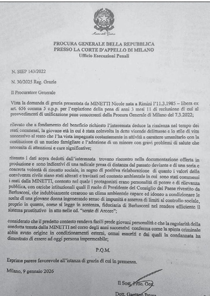 La domanda di grazia per Minetti aveva avuto parere favorevole, ma nuove ricostruzioni emerse sulla stampa spingono il Quirinale a chiedere ulteriori verifiche
