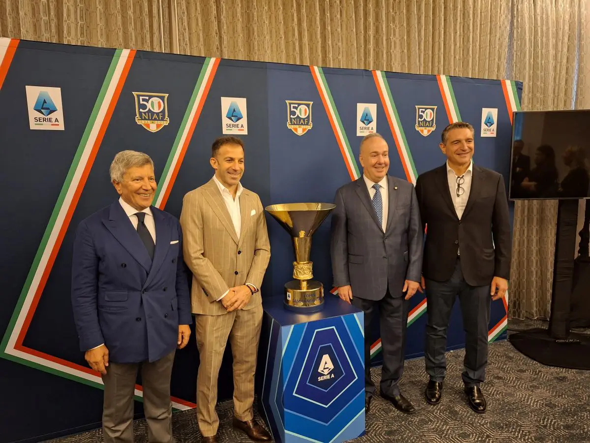Presente anche Alessandro Del Piero, che ha condiviso aneddoti della sua carriera e riflessioni sul ruolo dello sport come ponte tra le culture. “Negli Stati Uniti ho trovato una seconda casa. Eventi come questo dimostrano quanto il calcio italiano sia amato anche oltreoceano – ha affermato Del Piero -. Devo sottolineare che, indipendentemente dal lavoro che facciamo, la Niaf è stata sempre un grande supporto per tutti gli italiani che sono venuti qui. Dobbiamo continuare a promuovere l’Italia nel mondo e dobbiamo sfruttare al massimo le nostre potenzialità”. A fare gli onori di casa per la NIAF è stato il presidente e CEO Robert Allegrini, che ha sottolineato l’importanza della collaborazione con la Lega Serie A in un anno simbolico per la fondazione: “Nel nostro 50° anniversario, siamo onorati di accogliere la Lega Serie A e di celebrare insieme il patrimonio condiviso che unisce le nostre comunità”.